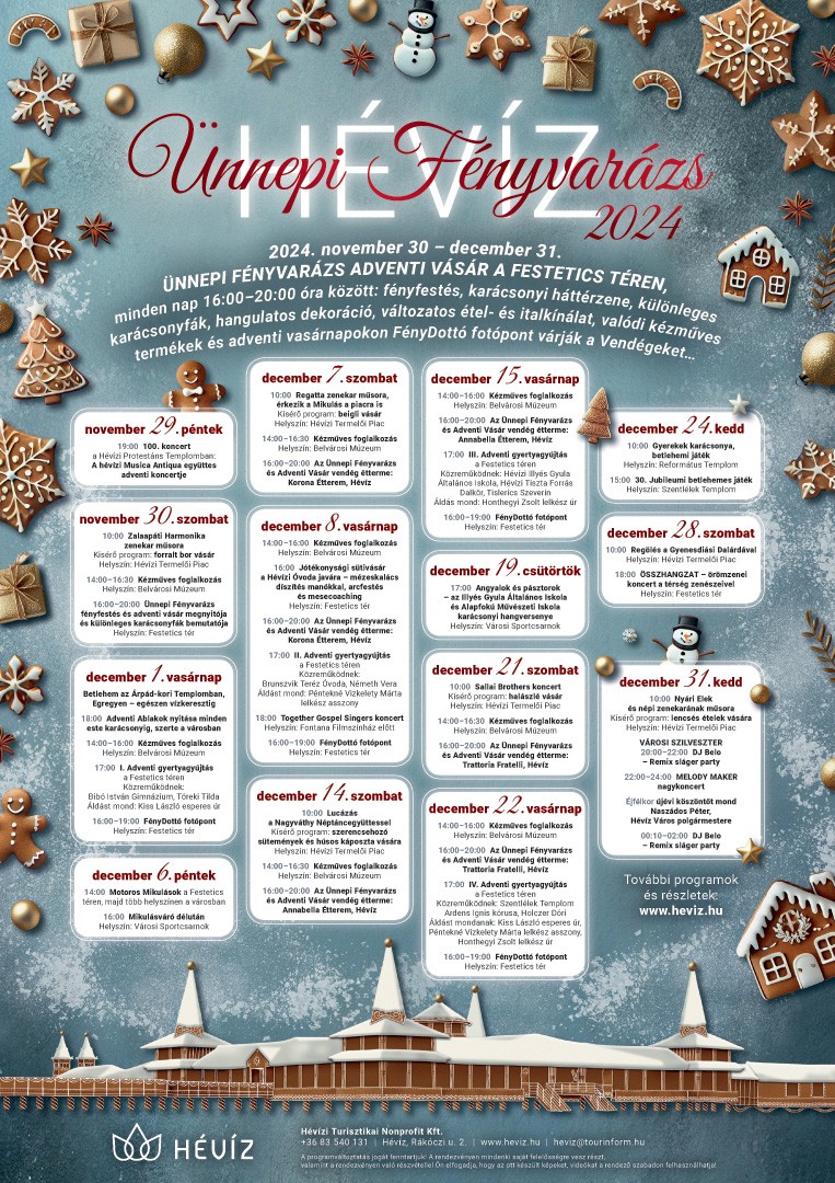 Az ünnepi időszak közeledtével szeretettel várunk mindenkit az idei adventi és szilveszteri programokra, ahol kicsik és nagyok egyaránt találhatnak kedvükre való eseményeket. Városunk több helyszíne megtelik ünnepi fényekkel, illatokkal és zenével, hogy együtt hangolódjunk a karácsonyra és az új év köszöntésére. A gyertyagyújtások meghitt pillanatai mellett látványos fényfestés és ünnepi díszbe öltöztetett fenyőfák várják az érdeklődőket, hogy mindenki átélhesse a varázslatos adventi hangulatot.